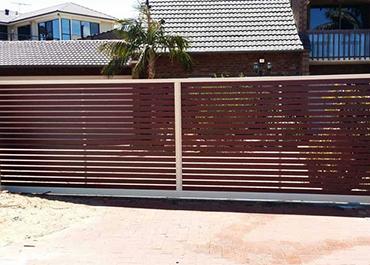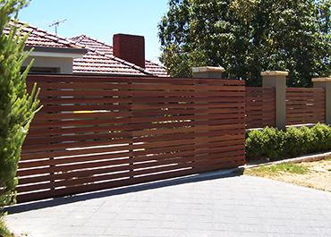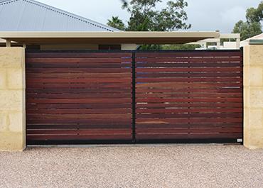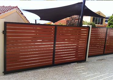 Jarrah Horizontal On-Frame Sliding Gate and Infill Panels